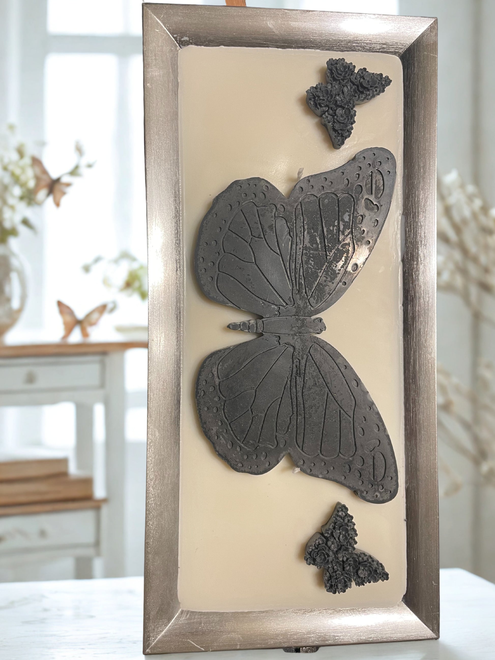 Realistic, hand-placed butterflies (non-flammable & safe) make each candle a whimsical statement. -